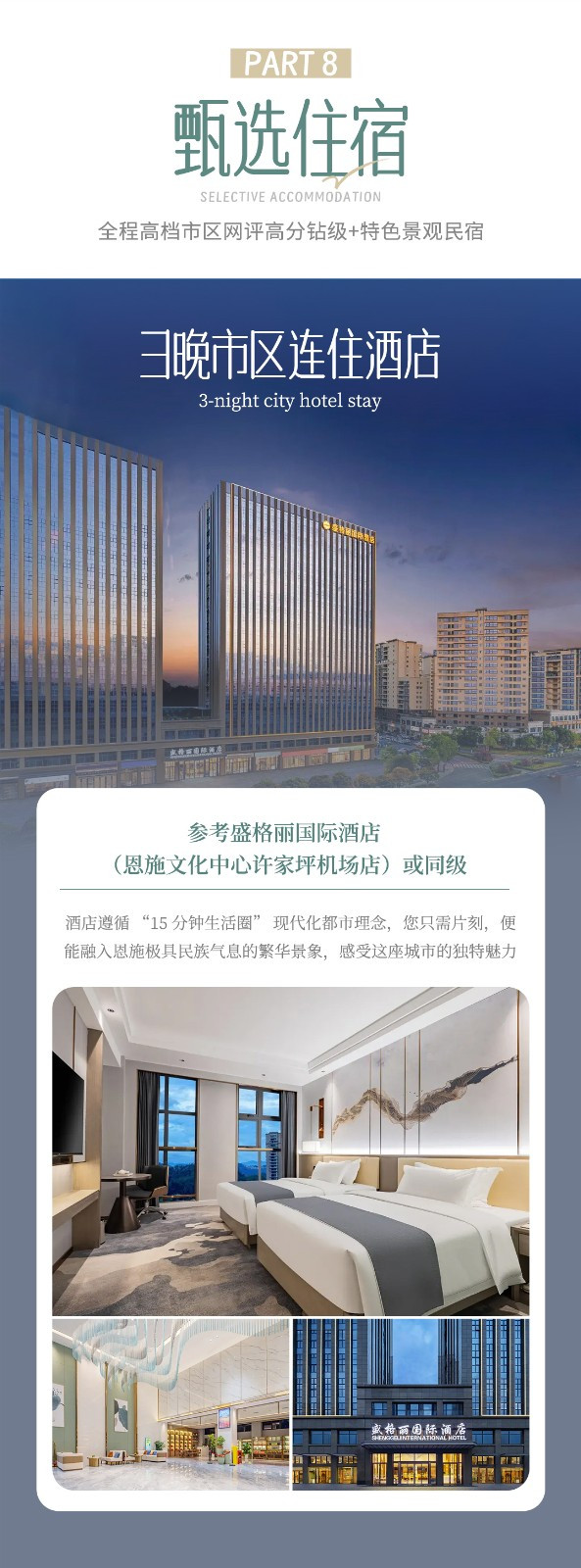 第一/二/三晚宿恩施市:参考恩施盛格丽国际酒店4钻或同级;