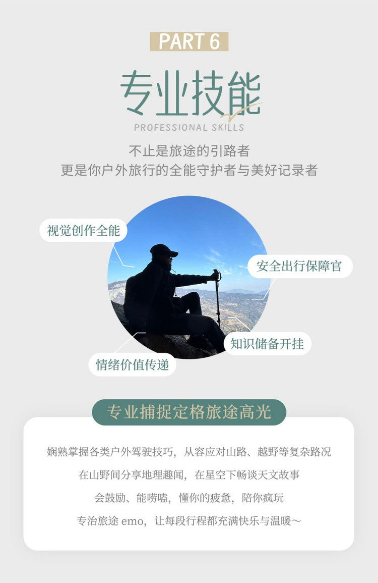 6.杂物:墨镜、保温杯、晕车药等杂物自行备好,另外建议也可以自备洗漱用品;