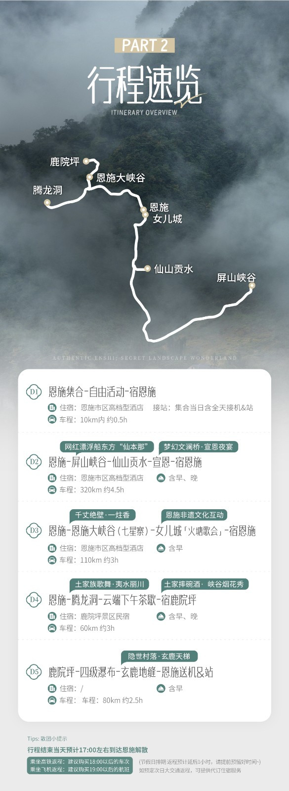 行程结束当天预计17:00左右到达恩施解散