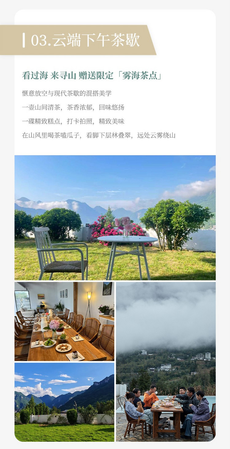 里的景观下午茶,可细品精致茶点,尽赏万米绝壁长廊云雾缭绕的壮阔,邂逅 “清江升白云” 的奇景。亲子、闺蜜、家人打卡拍照,定格云端惬意时光。