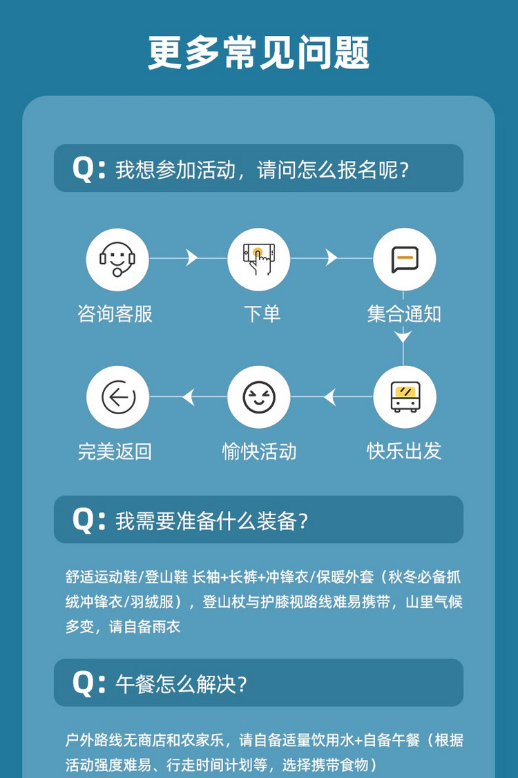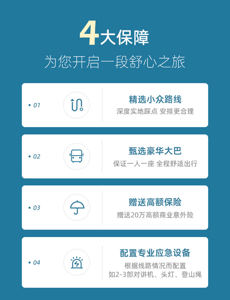 6、 此旅行给大家投保专业户外旅行意外险,保险从集合日开始到活动结束日为止。
