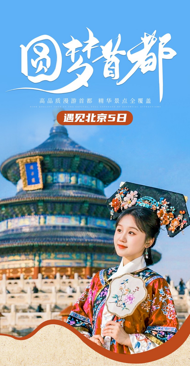 今天为全天集合日,我们相聚在北京,出发前三天短信通知集合酒店。领队会在出发前一天下午18:00前联系您。到达酒店报【遇见北京+姓名】入住酒店。