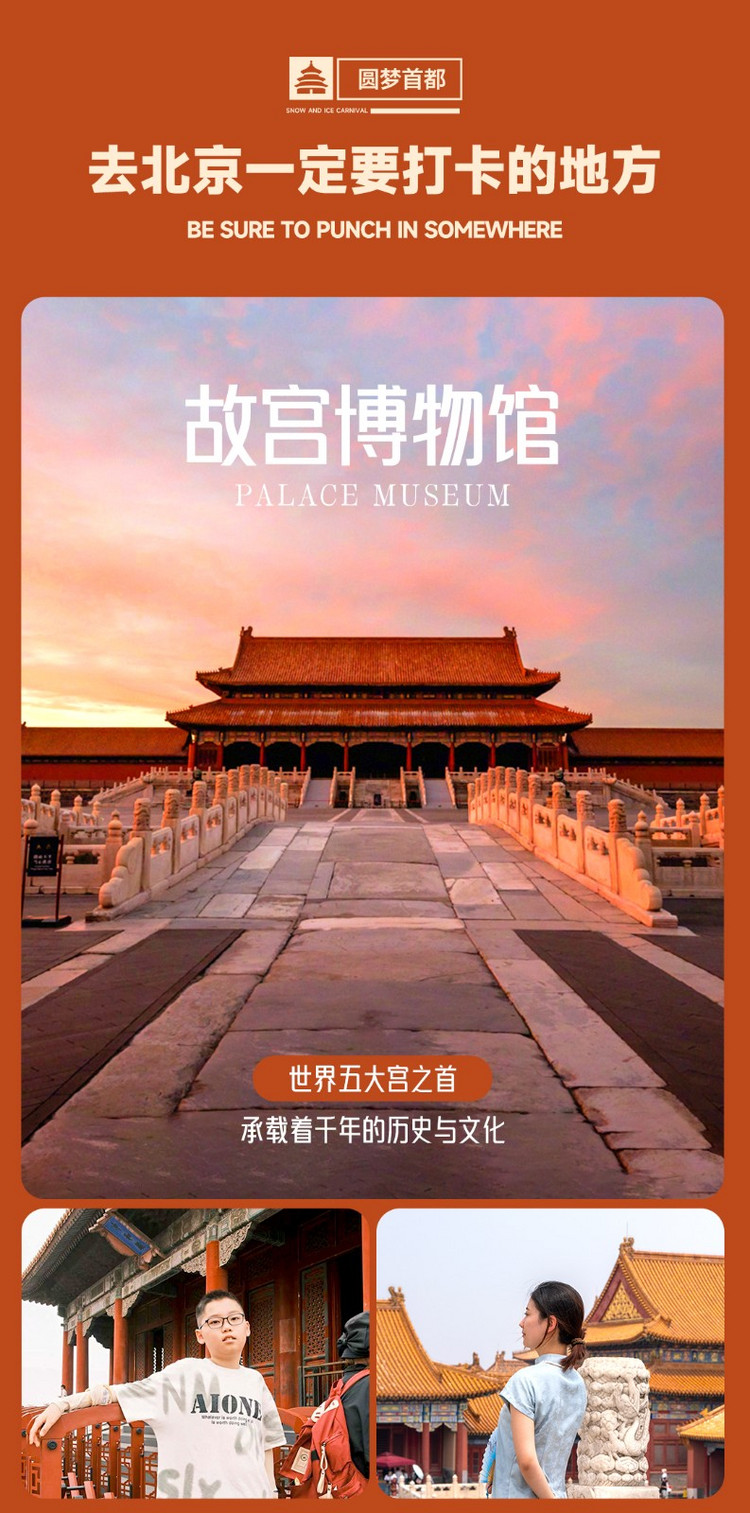 ③ 故宫景区周边无停车场及停车区域,临时上下车点需步行一段距离及等候若干时间,敬请谅解!故宫实行周一全天闭馆,若班期遇有周一,届时根据实际情况适当调整行程。