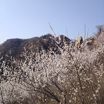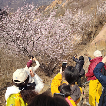 09:30左右到达后花园。漫山遍野的桃花如珍珠般铺满白虎涧山峦,北京春季赏花徒步天花板名不虚传!在这里,山桃花盛开如雪,密密麻麻地铺满山峦,宛如一张绚丽的地毯。阳光下,桃花闪烁着如珍珠般的光芒,美不胜收。