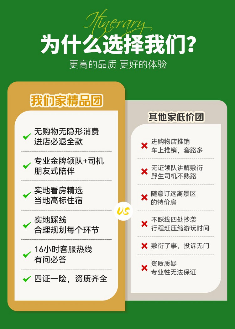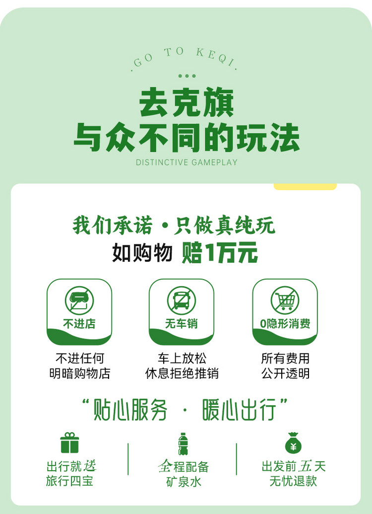 10、出游过程中,如产生退费情况,以退费项目旅行社折扣价为依据,均不以挂牌价为准。