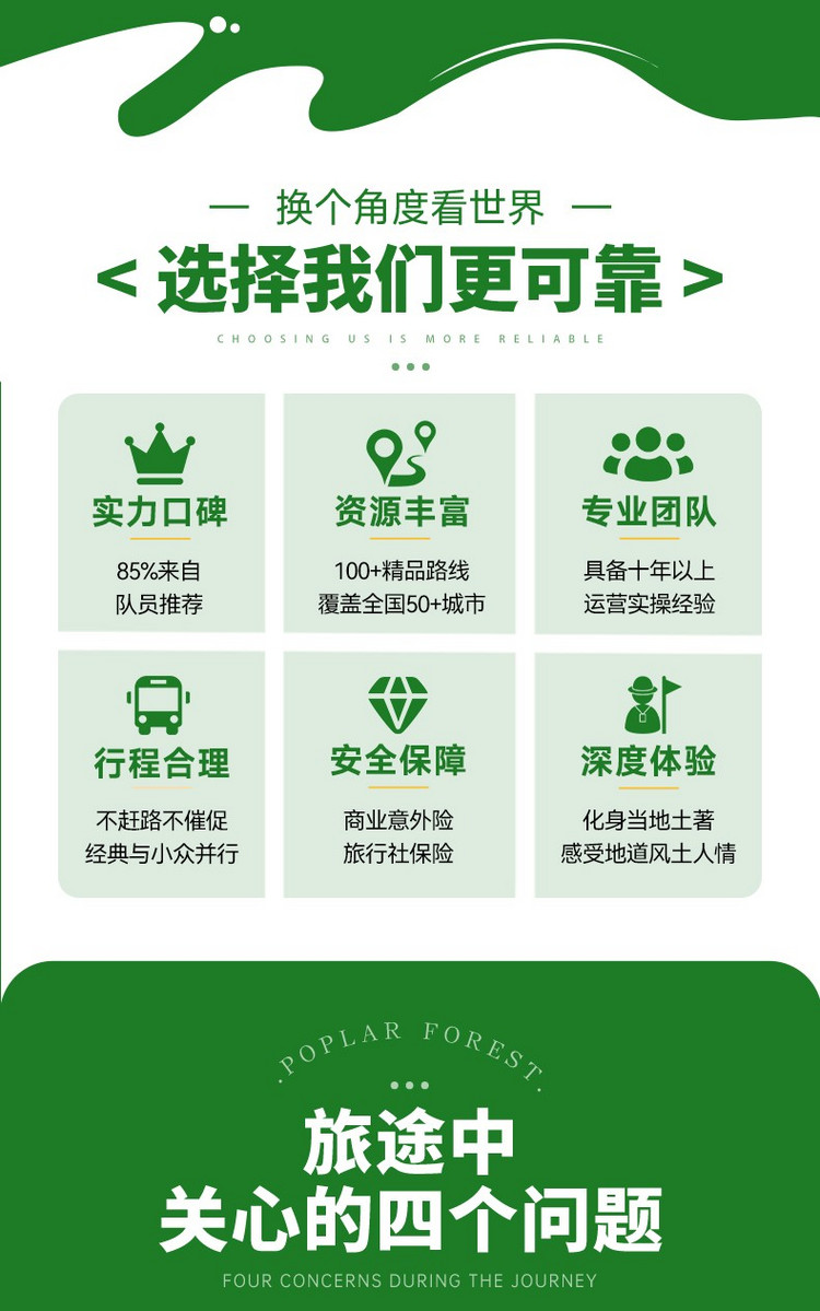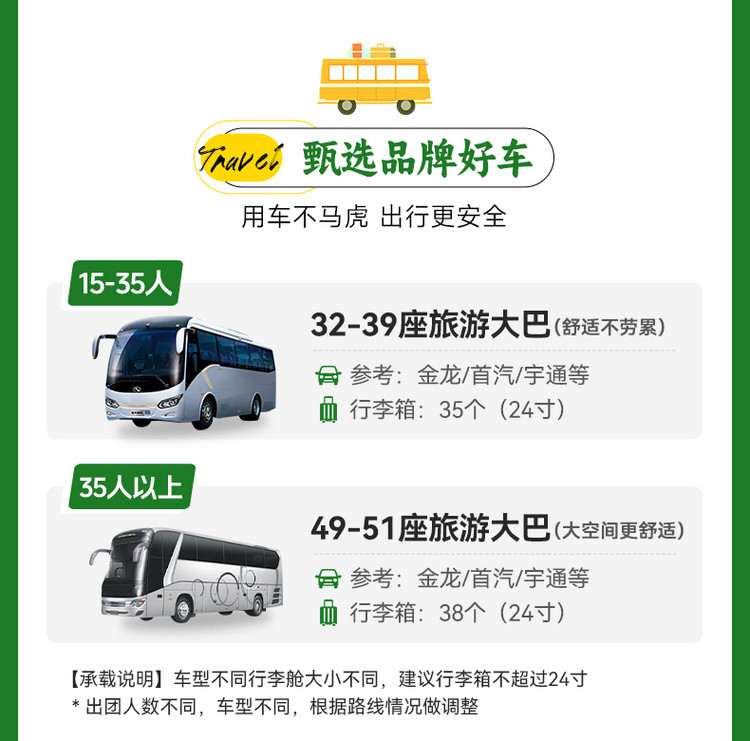 2、以上行程时间及顺序供参考,受天气、交通、景区调控及队员体能等不同影响有可能会调整,以领队实际安排为准。