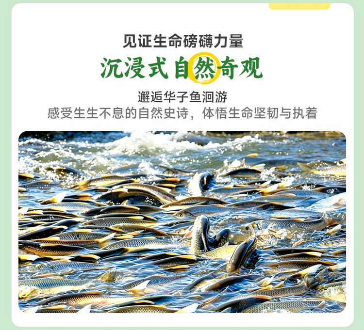 抵达达里湖,我们在这里拍照游玩,观赏达里湖的美景。登上曼陀山,高大的风车伴着太阳的光辉不停地旋转,阳光洒在草原湖泊上,水天一色,缤纷绚烂。乘坐摆渡车到达湖边的碧海银滩,近距离欣赏达里湖美景。在这里我们便开始奔赴这场震撼的自然奇观——华子鱼洄游。每到洄游时节,成千上万的华子鱼为了繁衍后代,从高碱性的达里湖出发,沿着贡格尔河逆流而上,它们奋力摆动着身躯,一次次迎着湍急的水流跳跃,成群结队的鱼群在河道里穿梭,形成极为壮观的生命景象。漫步在河道旁的木栈道上,能近距离感受这份执着又热烈的自然生命力,远处湖水与草原相接,天高地阔,湖光草色相映成趣,随手定格都是独属于草原的自然画卷。