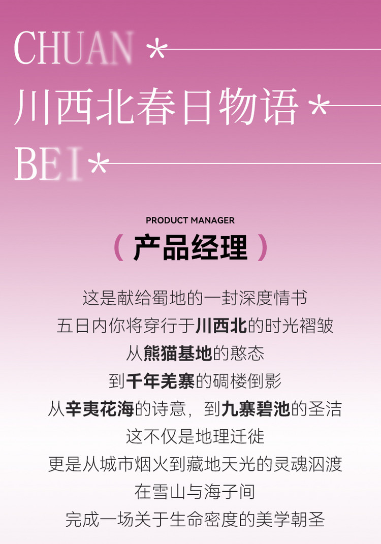 下午 & 晚上 (12:30-21:00):启程返回成都,跟车回成都(约400km,8h)可选黄龙九寨站散团,动车返回成都约2.5小时。