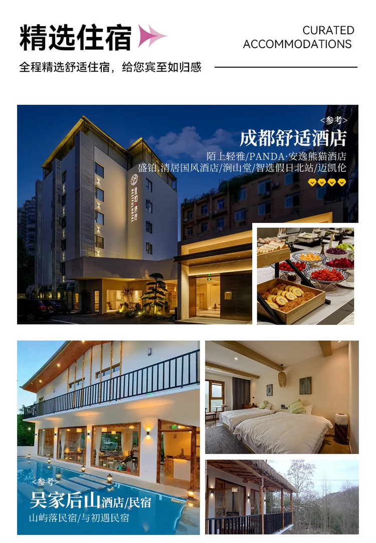 3. 门票:熊猫基地门票55元/人,报恩寺门票40元/人、九寨沟门票190元/人+观光车90元/人