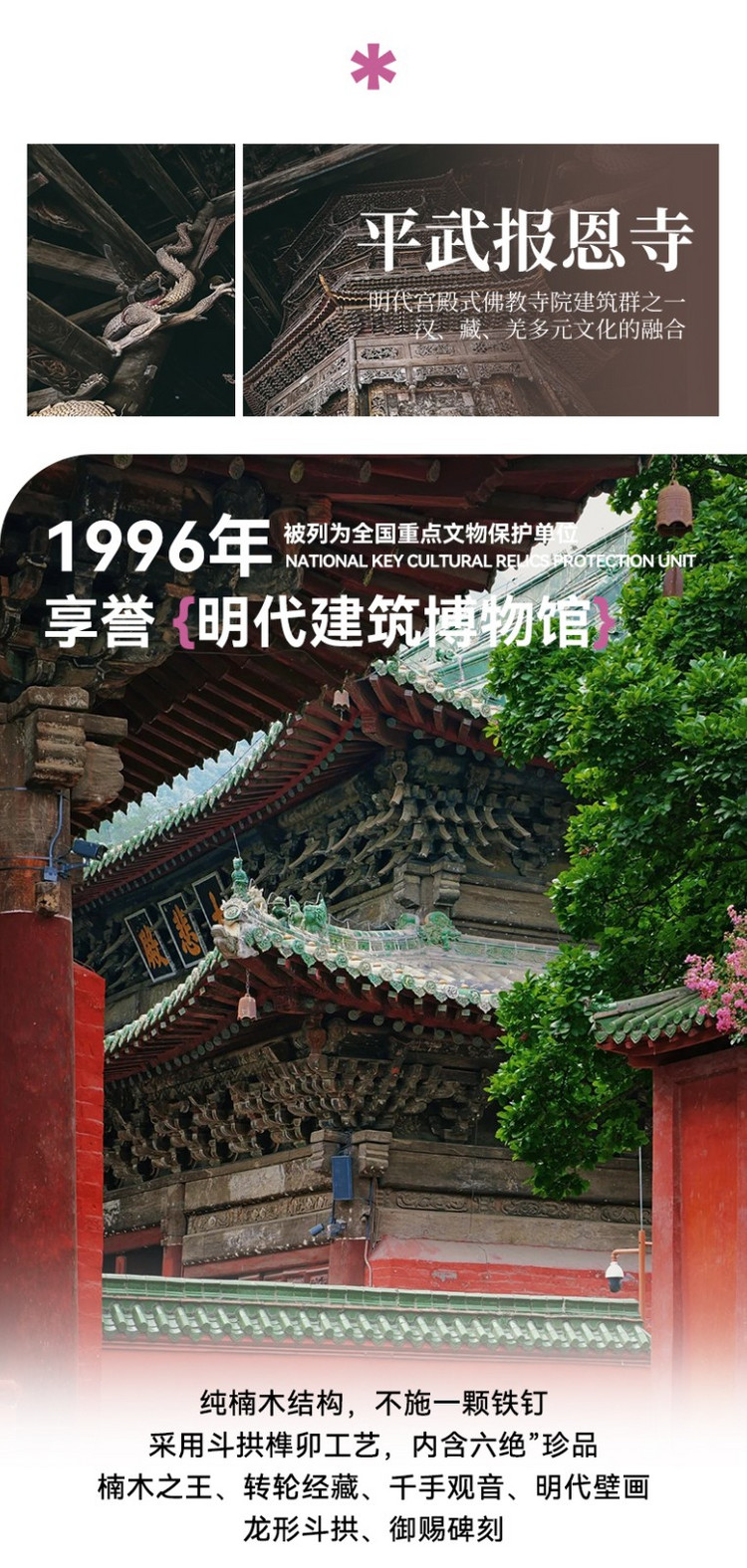 中午 (11:00-16:00):出发前往平武县(约140km,4h),在县城用午餐后,参观平武报恩寺(游玩1小时)。该寺开放时间为08:30-17:00。