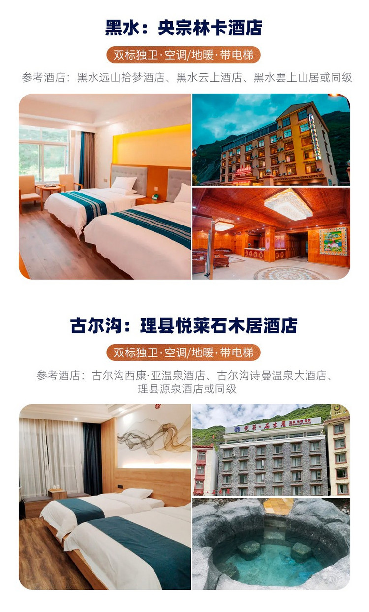 (4)晚上入住古尔沟赠送温泉,建议提前准备好泳装,古尔沟因天然温泉而出名,是理县的一个小镇,请大家对酒店及温泉合理期待。