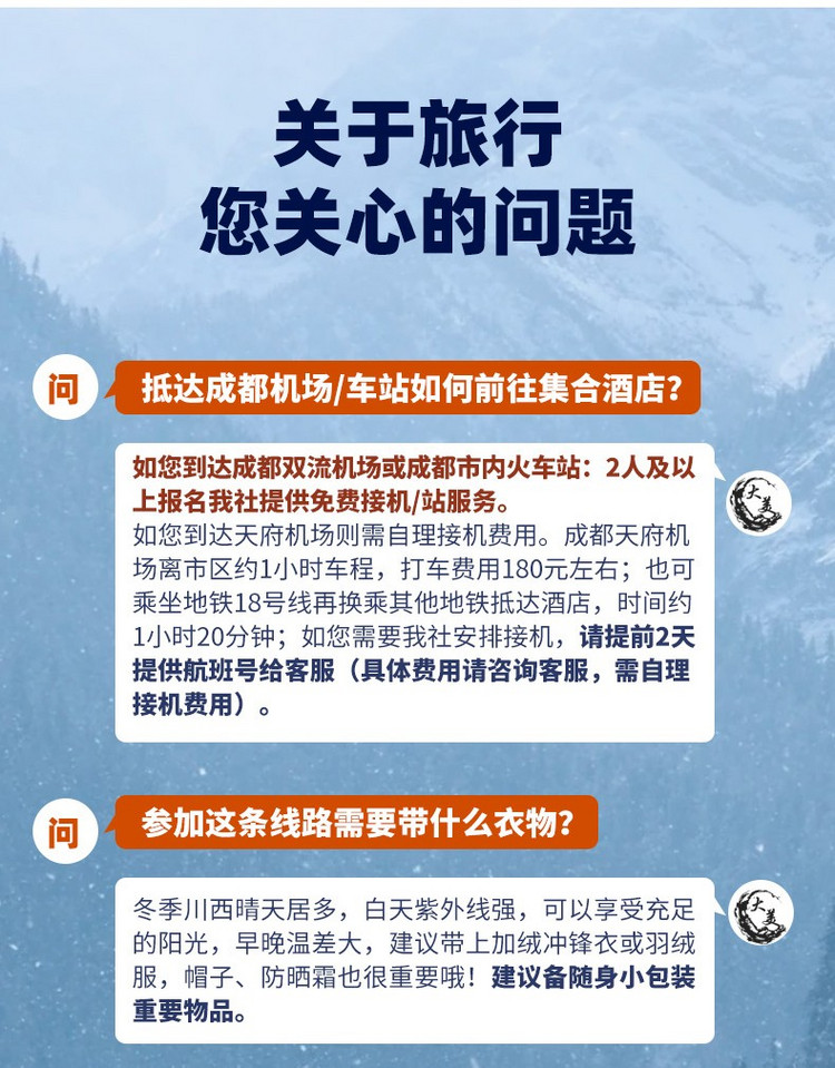 7、2人及以上报名赠双流机场接机/成都市内火车站接站(天府机场接机需自理费用)。