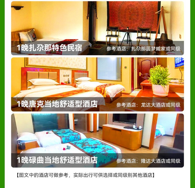 行程中的所列的酒店类型,2星/2钻=经济型;3星/3钻=舒适型;4星/4钻=高档型;5星/5钻=豪华型;意为评定或条件到达相应标准的酒店,少部分地区,由于政策等因素,可能存在酒店条件满足,但未进行星钻评定的情况。