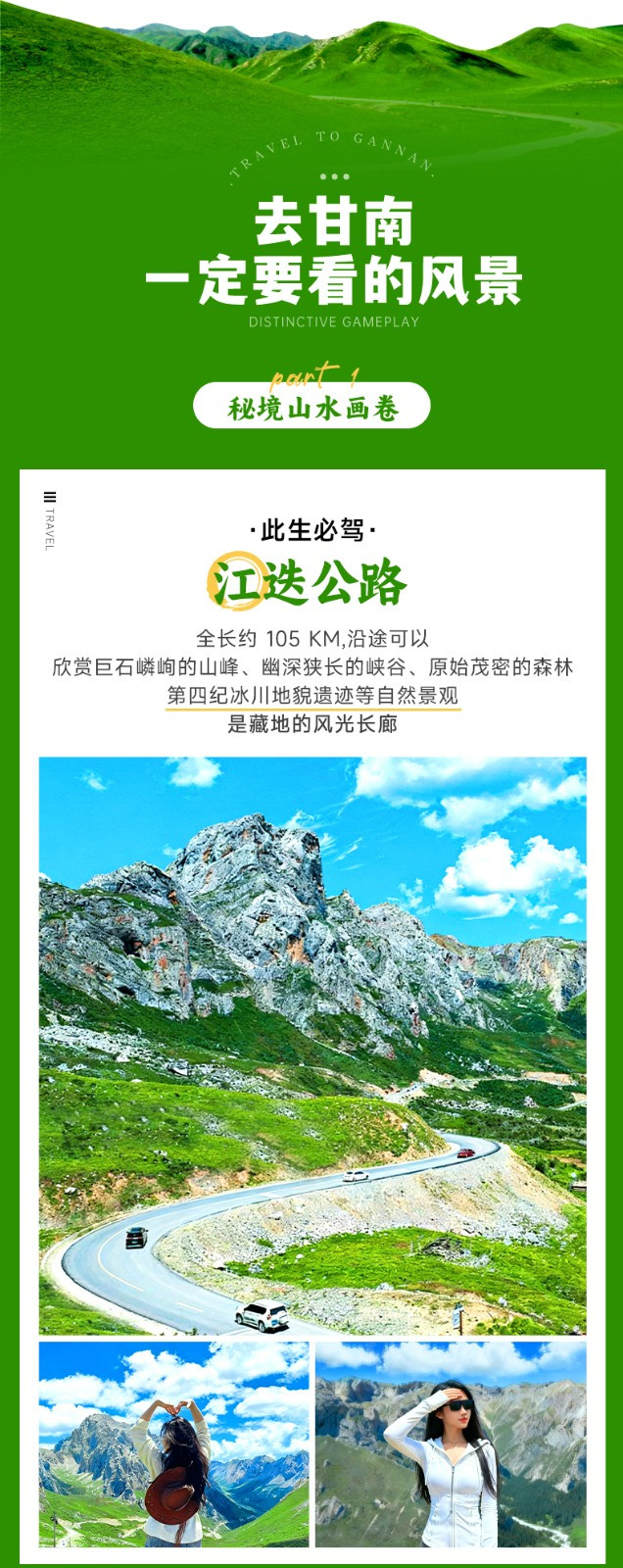 早餐后我们从酒店出发,开始穿越约100公里的【江迭公路】,一路欣赏沿途震撼而又浪漫的绝美风光。途径五彩斑斓经幡装饰的长达600米的隧道,抵达【达日观景台】(160km,车程约5小时,游玩30分钟),这里是看扎尕那全景的醉佳位置,俯瞰整个达日村和后面奇幻岩壁的全貌。还可看到四座雪峰如巨兽蹲伏,将村落、草甸、溪流揽入怀中。
