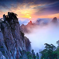 黄山风景区东邻浙江,南连江西,北与宣城、池州两市接壤,是长江与钱塘江两大水系的分水岭,也是安徽省最著名的的旅游风景区。奇松、怪石、云海、温泉、冬雪是黄山最为人津津乐道的“五绝”。
