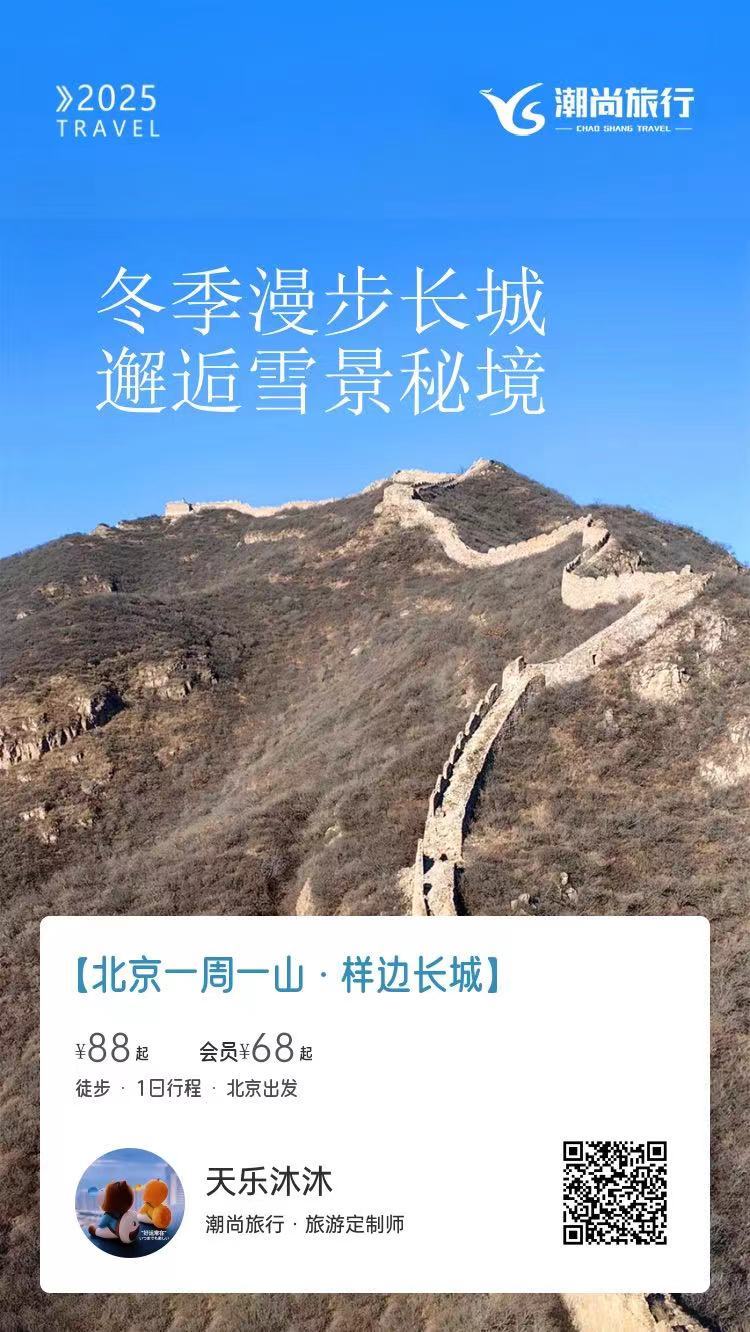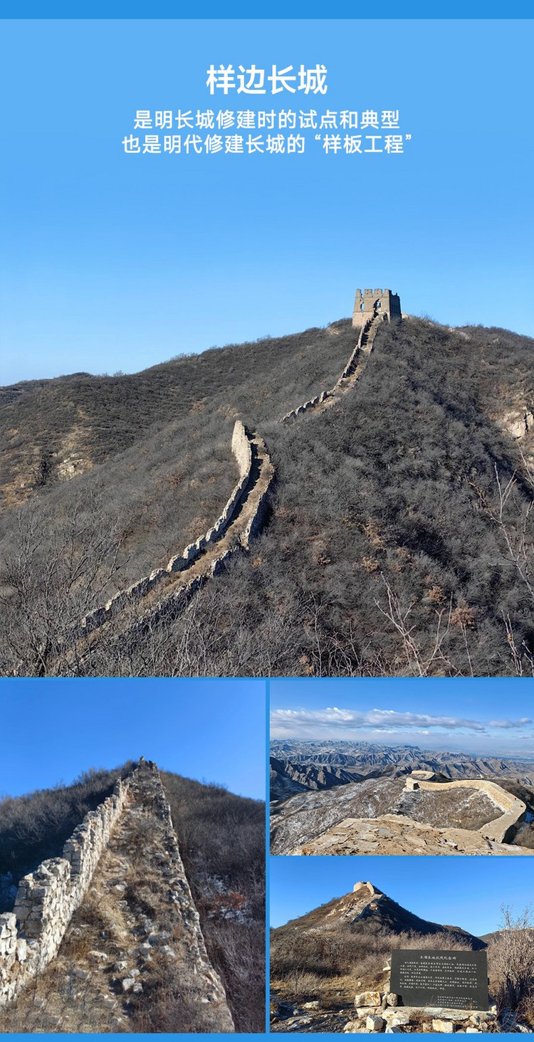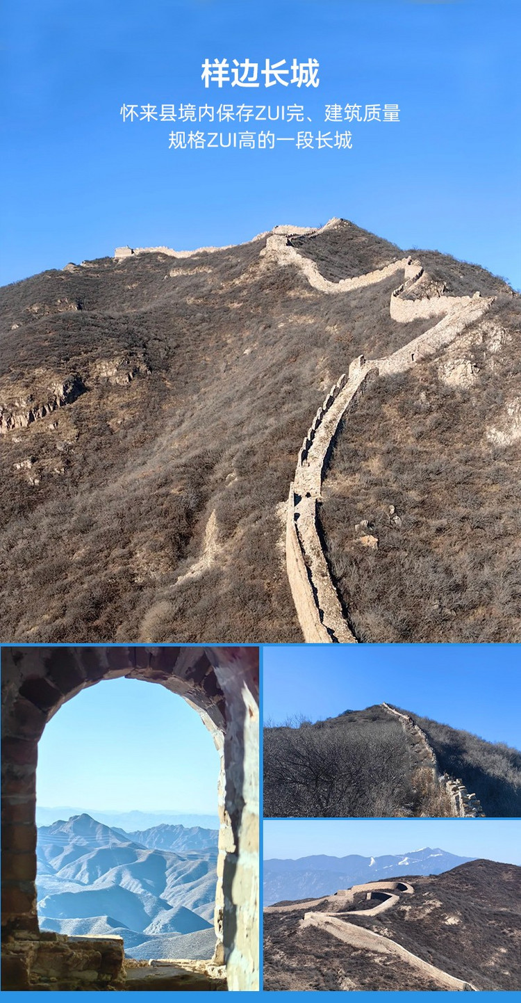 明朝洪武初年,明太祖朱元璋派遣大将军徐达修筑居庸关长城,为了保证工程质量,特在今河北张家口怀来县的庙港东侧的山脊上修建了长城的样板工程,名曰“样边”。样边长城(庙港长城)是怀来县境内保存最完好、建筑质量、规格最高的一段长城,位于庙港东、横岭西,总长约3000米,城墙都是用规则的大石条砌成。作为北方少有的明长城段,样边长城的冬季雪景美到失语!山脊线被雪花覆盖,像披上了白绸,站在烽火台上抬头就能看见漫天雪幕。长城沿线既有粗犷的烽燧遗迹,也有蜿蜒的城墙,适合慢节奏徒步。最惊喜的是,部分路段能遇见山间野花丛,尤其是野性的粉白榆叶梅,与雪天的苍茫形成奇妙对比。沿途可顺路打卡附近的古村落或田园风光,行程自由度超高!