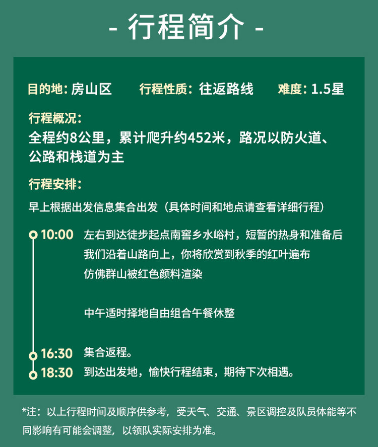 (集合时间地点如有变化,请以领队通知为准,请大家遵守时间不要迟到)