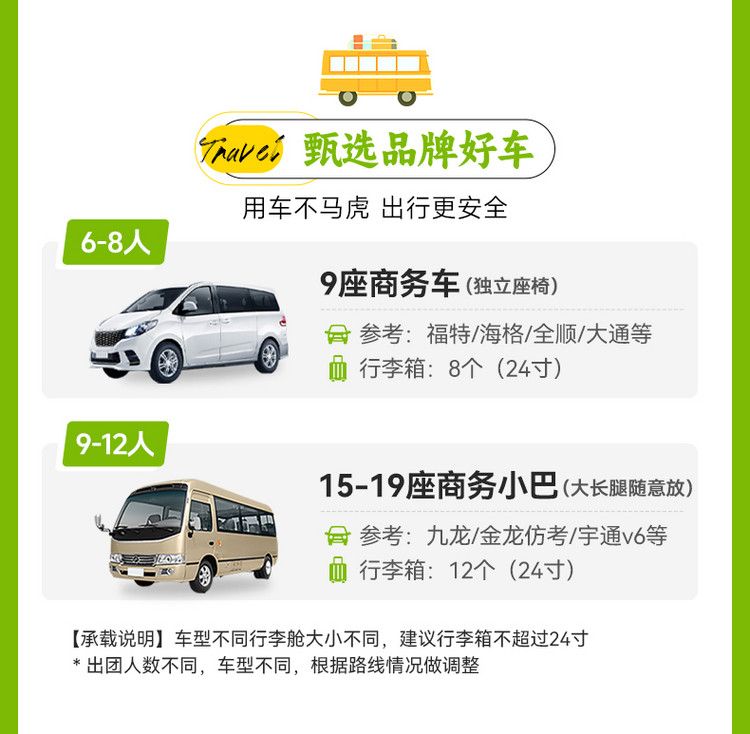 9、如遇路况原因等突发情况需要变更各集合时间的,届时以导游或随车人员公布为准。
