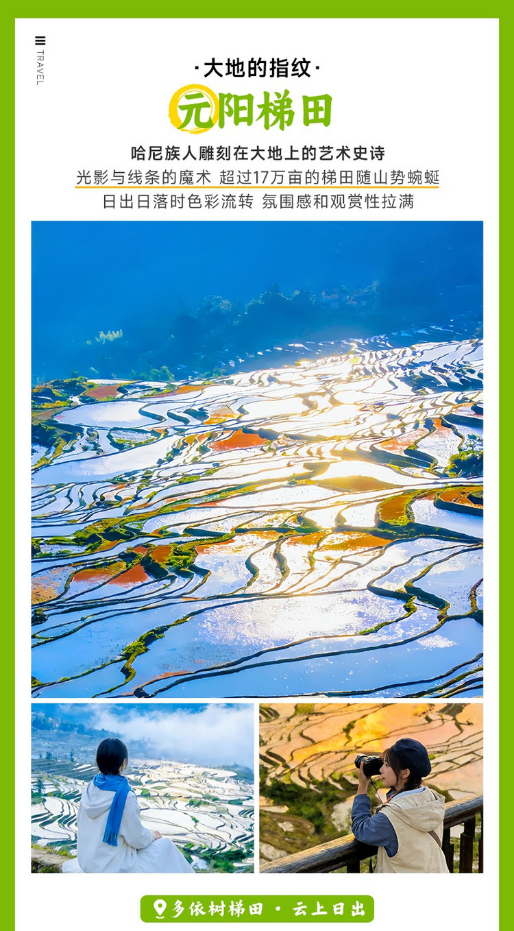 1、元阳梯田山顶海拔约1900米,早晚温差很大,请做好保暖,以防着凉;