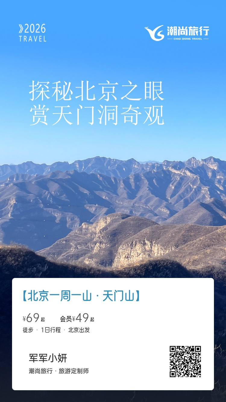 天门山国家森林公园坐落于北京市门头沟潭柘寺镇,这个景区因山顶一处独特的透天窟窿而闻名,被当地百姓亲切地称为窟窿山。这个名称不仅因为其形似“门”,更因窟窿内壁上的“天门山”字样石刻而得以正式命名。 尽管这个景区已经荒废,但“石长城”与天门洞的壮观景观依然吸引着无数游客前来探访。