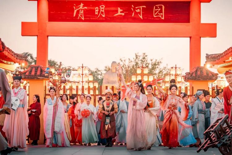 ·【清明上河园】以北宋画家张择端《清明上河图》为蓝本1:1 复原的大型宋文化主题公园,占地600 余亩(水面 180 亩),拥有400 余间仿宋房屋、50 多艘古船,是中原最大仿宋古建筑群。特色是 “活起来的《清明上河图》”工作人员身着宋装,每日上演60 + 场实景演出,打造沉浸式北宋市井生活体验。