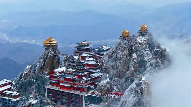 ·【老君山】因传说中老子归隐修炼而得名,被誉为 “天下无双圣境,世界第一仙山”。属伏牛山主峰,海拔 2217 米,以花岗岩峰林地貌和道教文化为核心特色,有 “北方张家界” 之称。四季皆有绝景:春赏杜鹃、夏避酷暑、秋观云海、冬览雾凇,是中原地区最受欢迎的山岳型景区之一。