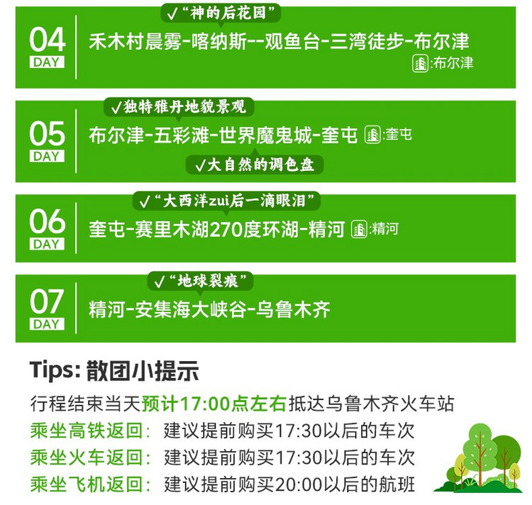 (6)注:活动天数以24小时为一天计算,以发团计划时间为准
