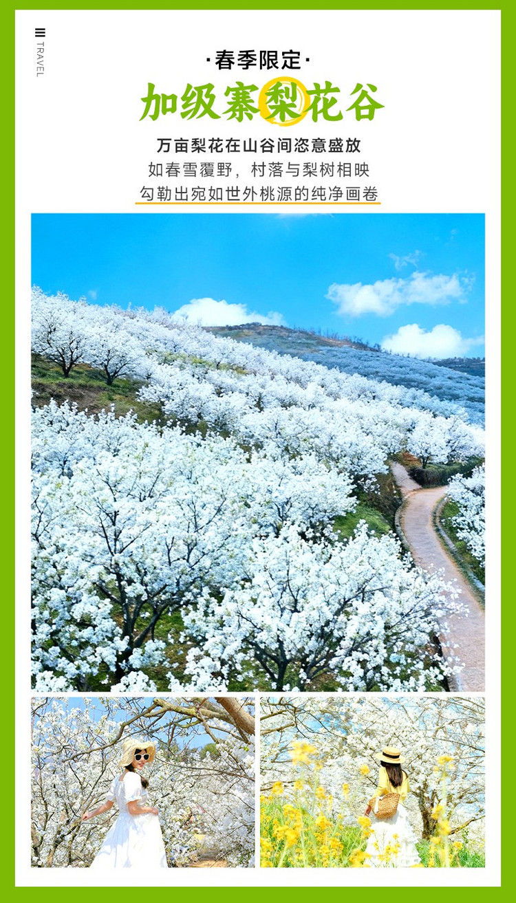 13:30 到达【加级寨】,午后阳光正为整座山谷覆上耀眼的光釉,让漫山梨花愈发晶莹剔透。穿过缀满雪云的枝桠,斑驳光影洒在石板路上,远处身着民族服饰的村民正在花树下休憩。这一刻,时光仿佛被花香与暖阳浸透,缓慢而明亮。