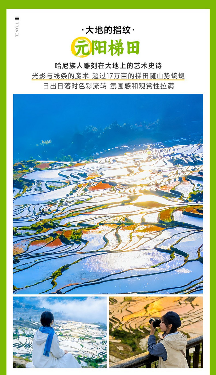 1、元阳梯田山顶海拔约1900米,早晚温差很大,请做好保暖,以防着凉;