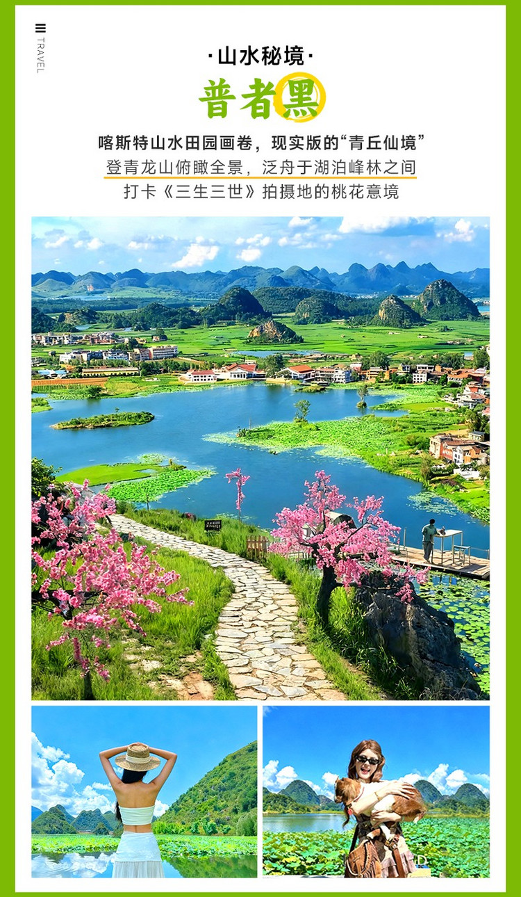 12:30 到达【普者黑】,水上峰林如青黛浮于碧波,这里是滇东南的喀斯特山水诗篇。乘一叶柳舟穿行万亩荷塘与溶洞暗河,船桨搅碎云影,惊起白鹭。