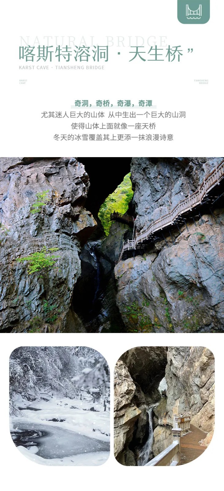 鬼斧神工的石桥,险峻扼要的栈道,底蕴深厚的部落,绘就出天生桥景区的绚丽多彩。进入景区,沿黄岩河朔溪而上,一幅山水画卷徐徐展开。