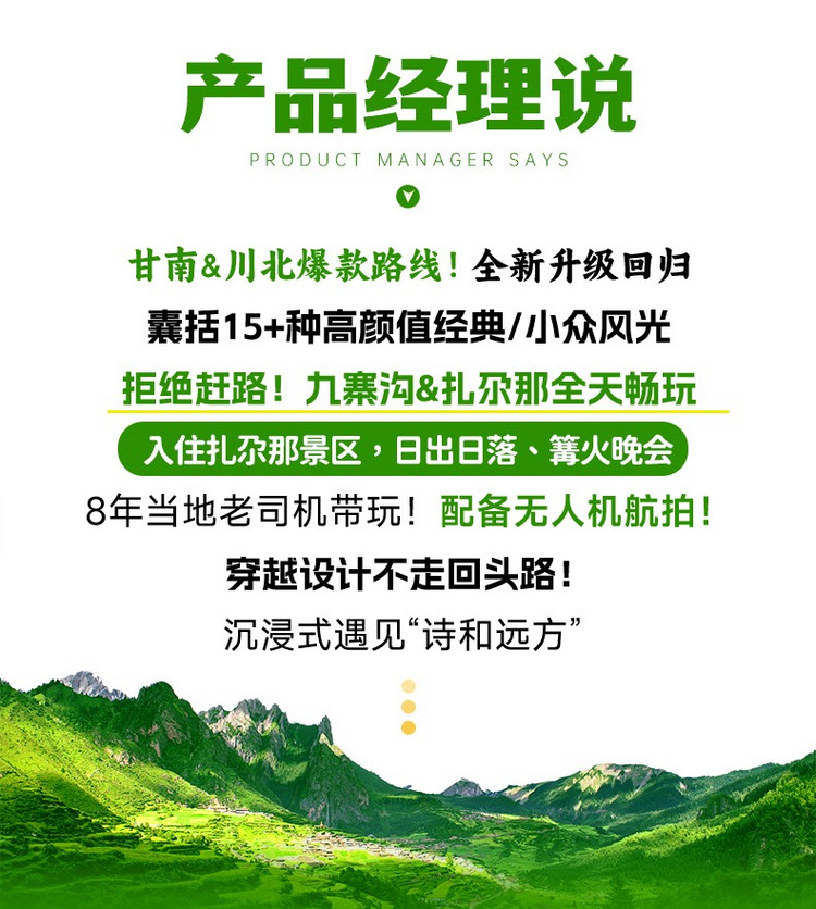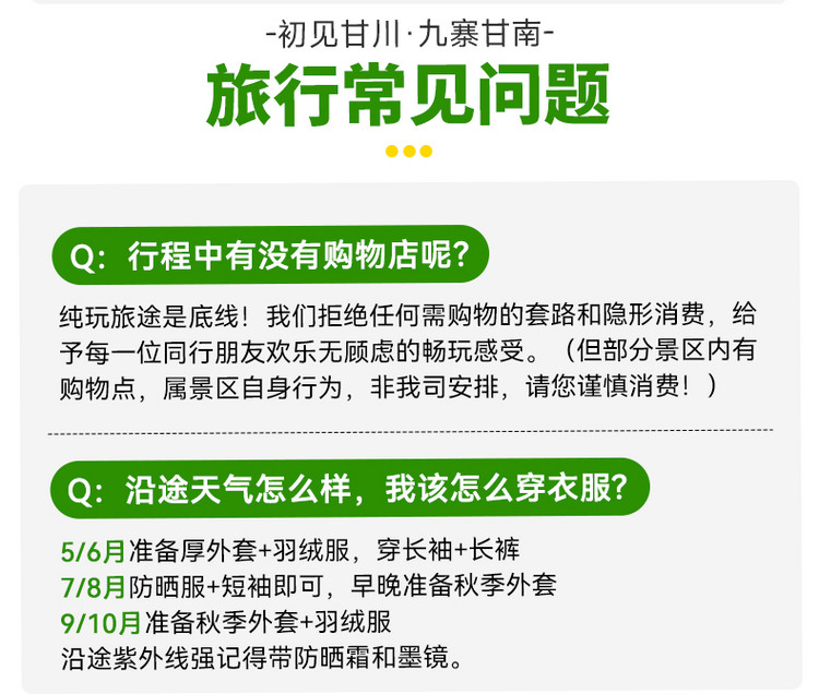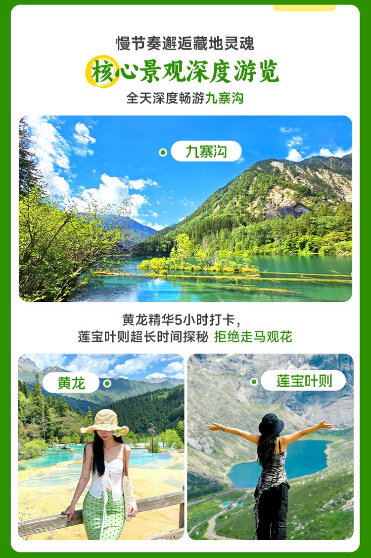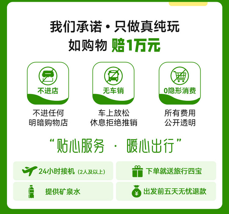 2、领票及排队进入景区等待时间根据当天客流决定。此日户外游览时间较长,紫外线较强,请备好防晒物品;因中餐自理,可自带干粮饮用水,景区内唯一用餐点为诺日朗餐厅;景区内,凭观光车票当日可在任一站点自由换乘游览,每辆观光车均有讲解员,请务必遵守集合时间哦。