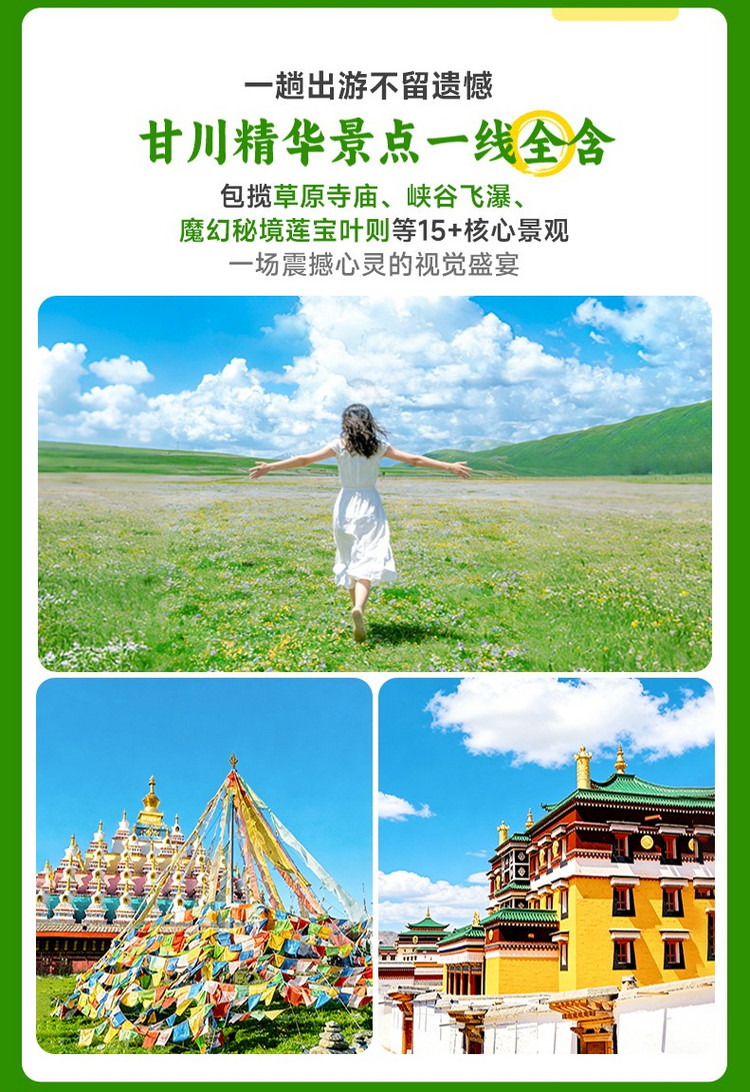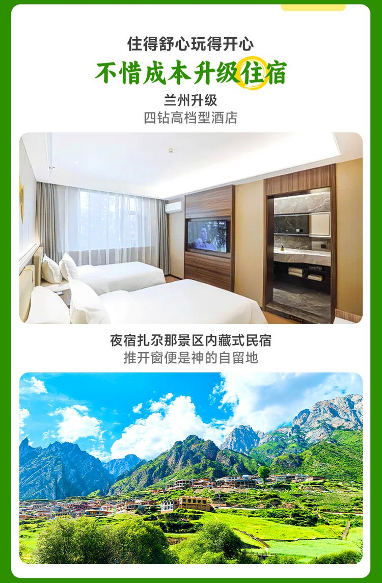 今天为全天集合日,我们相聚在兰州,出发前三天短信通知集合酒店。领队会在出发前一天下午18:00前联系您。到达酒店报【甘南九寨沟+姓名】入住酒店。