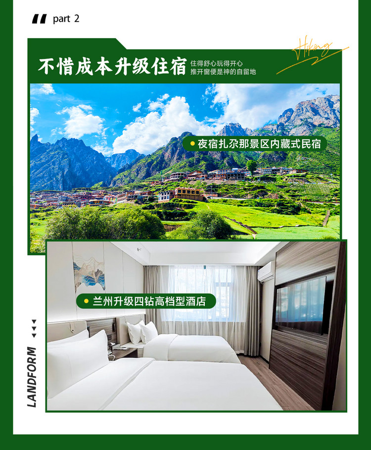 1、交通:兰州出发及返回兰州解散的全程专属用车及司机星级服务(含司机餐补、住宿)