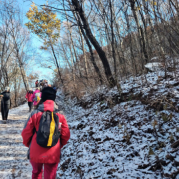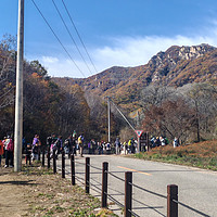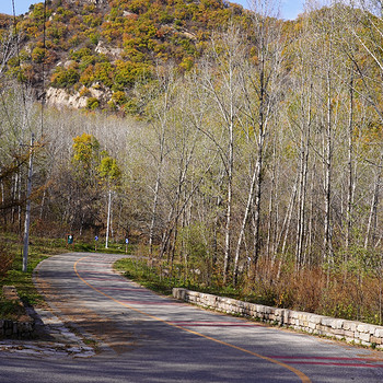 不乘坐摆渡车的伙伴可徒步登山,不用急,山不是很高,也不陡,秋天的风景确实极美,先走一般公路,然后台阶上山!