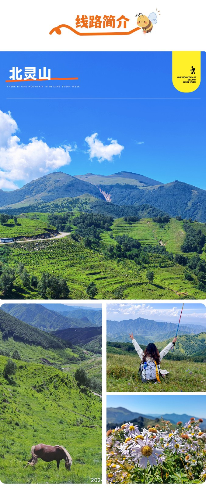 北灵山,海拔约1950米,位于北京门头沟区与河北涿鹿县交界处,是京郊徒步爱好者的热门目的地,被誉为“京郊阿勒泰”。踏入北灵山的那一刻,仿佛进入了一个梦幻般的自然世界。沿途的风景美不胜收,绿树成荫,花草相伴,让人心旷神怡。 一步步登上山顶,视野瞬间开阔,连绵的山脉和醉人的绿意令人震撼。在这里,时间仿佛慢了下来,所有烦恼都被抛到了九霄云外。北灵山徒步不仅是身体的挑战,更是一场心灵的盛宴。