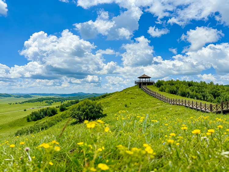 早餐后,我们收拾一下,踏上激动人心的【草原徒步挑战】!我们坐车前往【徒步起点】,沿着原生态草原一路走到【空中草原】【欧式草原】【影视基地】 (徒步全程10KM),在这里开启今日徒步之旅。蓝天、白云、青山、白桦林衬托着喧闹的百花世界,勾勒出一幅幅绚丽多姿的欧式油画。其中,《还珠格格》《康熙王朝》《射雕英雄传》《芈月传》《狼图腾》等著名影视剧都曾在此取景。