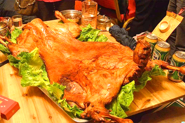1、烤全羊/烤羊腿(满20人送烤全羊一只,不满20人送烤羊腿或者烤羊排一个)