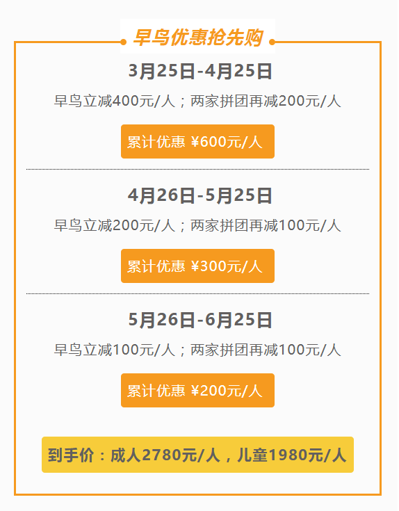 注:活动天数以24小时为一天计算,以发团计划时间为准