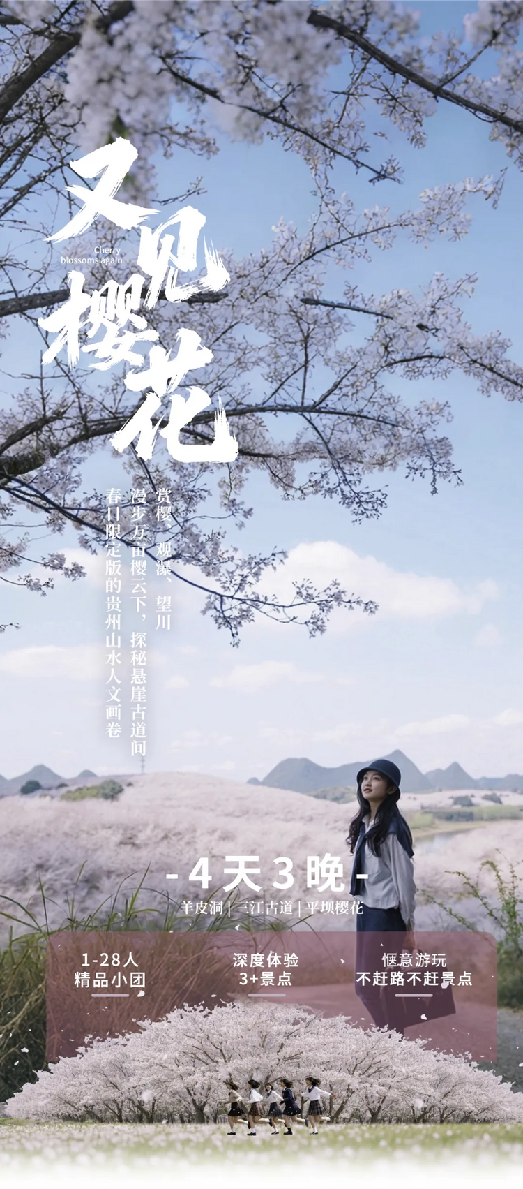 早餐后乘车出发世界级赏樱地——平坝樱花。我们选择一条与普通游客大部队不一样的路线进入樱花园,避开客流高峰,徒步游览边走边拍,各种“神仙角度”凹造型拍美照。