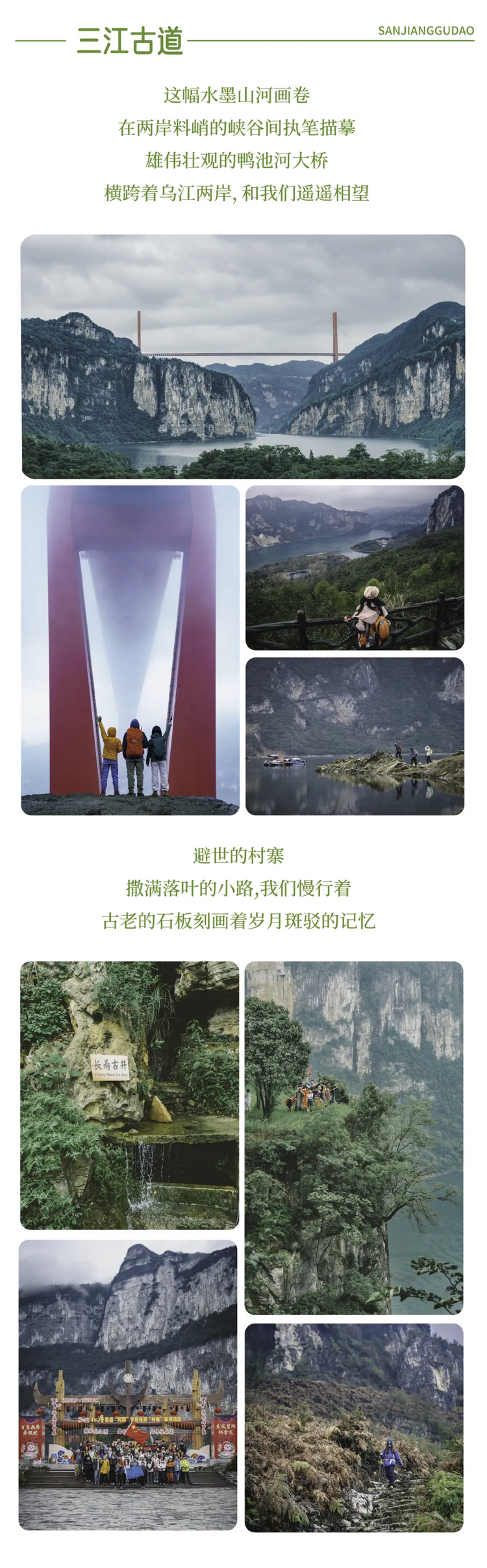 早餐后乘车前往黔西三江密道徒步起点,整理装备,简单热身后开启今日的徒步旅程,沿乡道,山路徒步。(中午适时分享各自带来的美食午餐)。