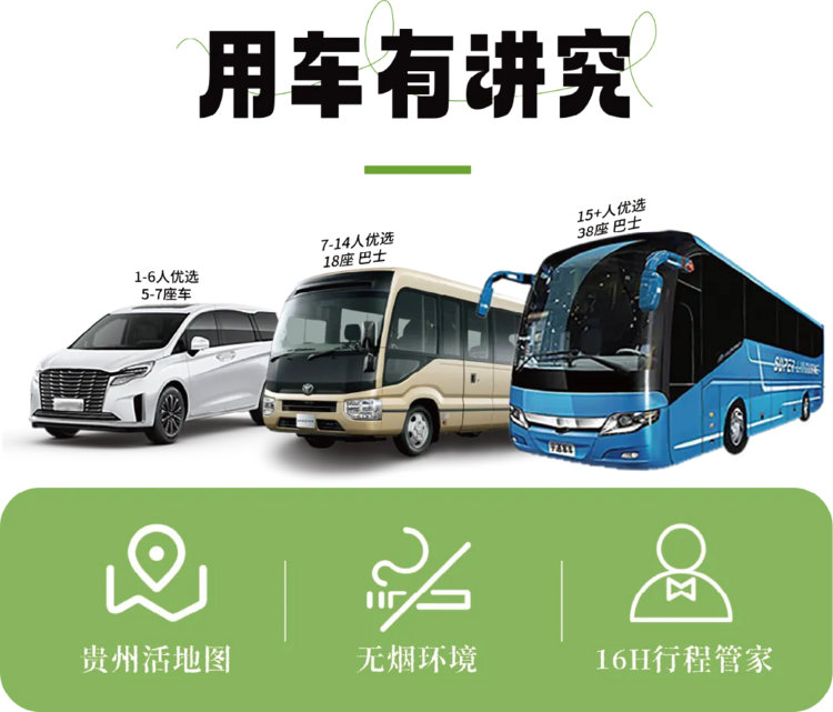 ➀ 用车:当地行程用车(根据具体人数选配车型:5-38座)