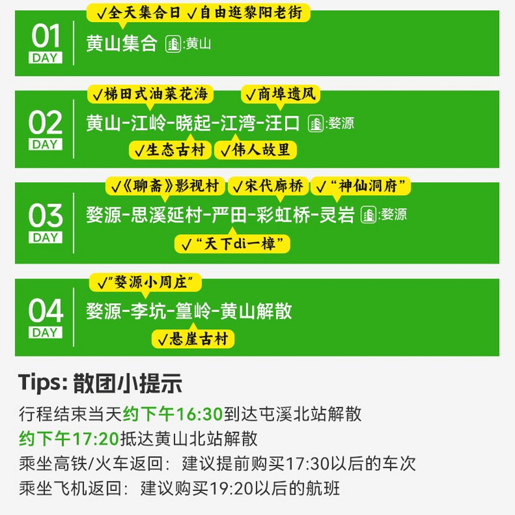 游玩结束,我们乘车前往黄山解散,依次送达屯溪机场-黄山北站