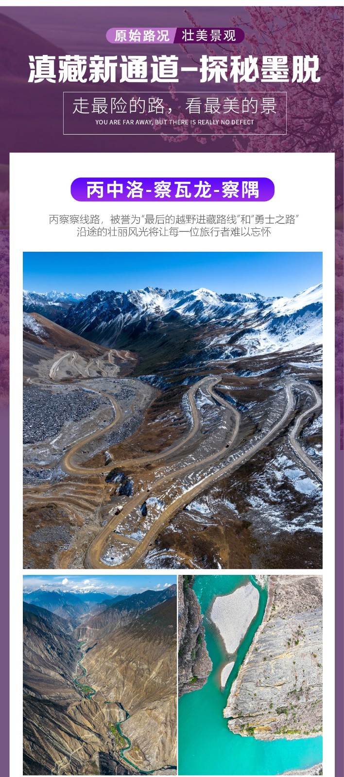 【世面独家】:精心策划穿越丙察察进藏之旅+圣地墨脱,涵盖了滇藏地区多处名山大川。全程不走回头路!看不一样的风景!