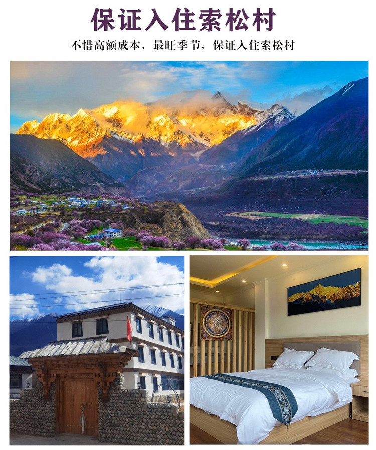 【优选住宿】:不惜高额成本,最旺季节,保证入住索松村;全程1晚4钻+3晚核心景区住宿+5晚精选酒店领衔,多年的实操经验,只为带给您一次舒心的旅程;