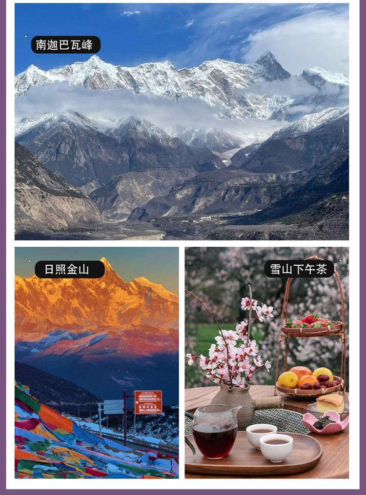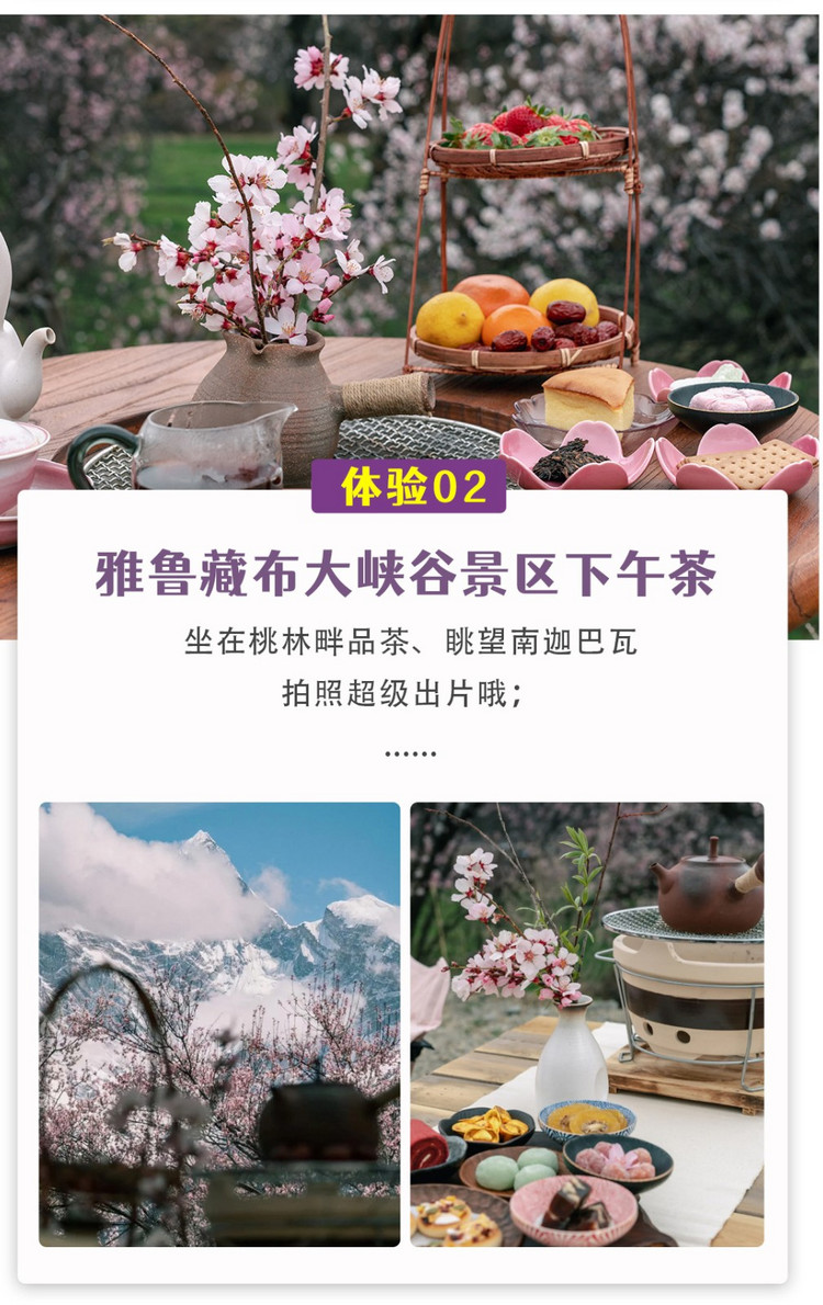【超值体验】:①特别安排雅鲁藏布大峡谷景区下午茶,坐在桃林畔一边品茶、一边眺望南迦巴瓦,超级出片;