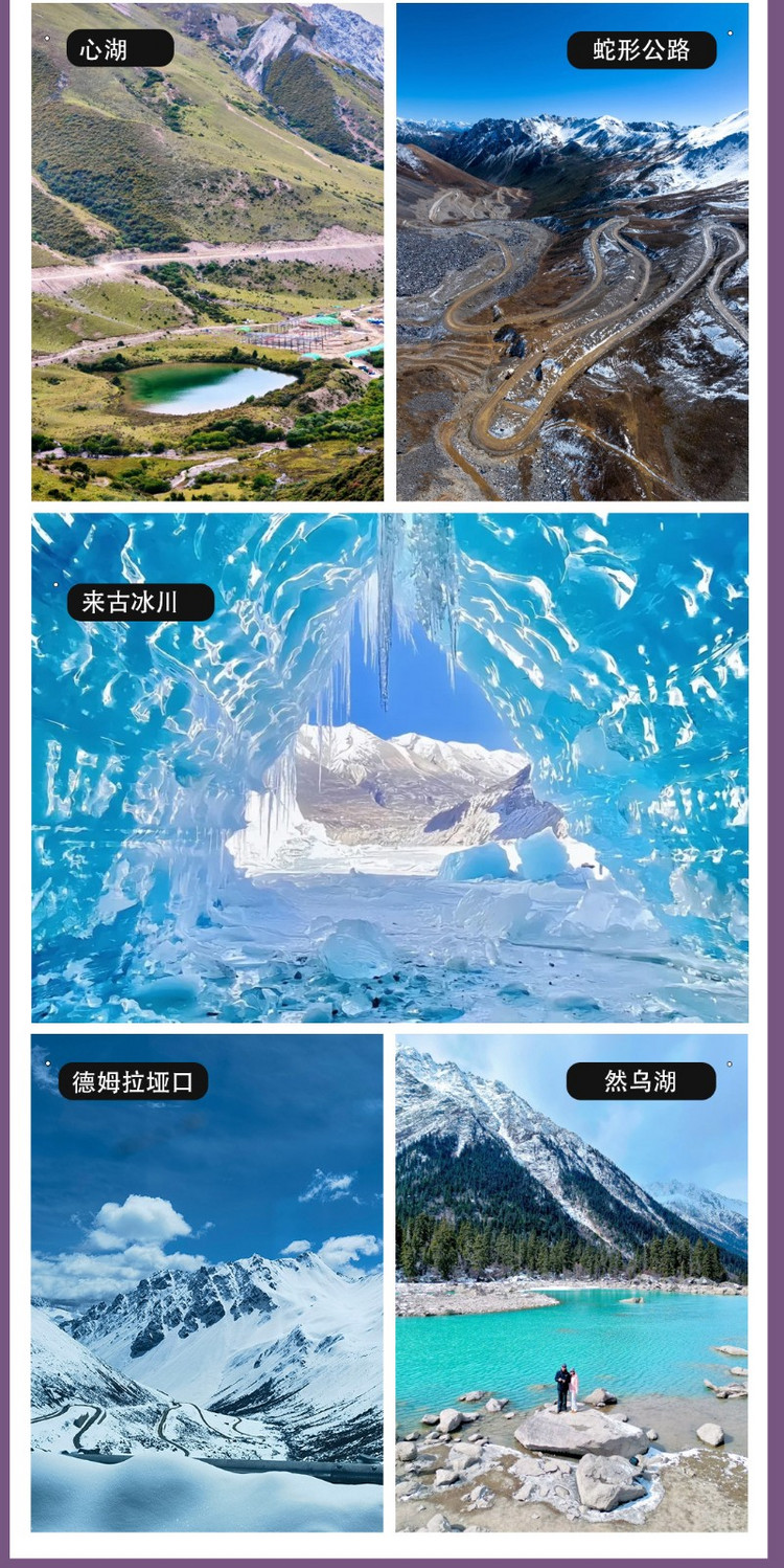 3.【门票】:来古冰川+往返电瓶车、嘎朗湖、岗云杉林、雅鲁藏布江大峡谷、嘎拉桃花村、观看纹面女;