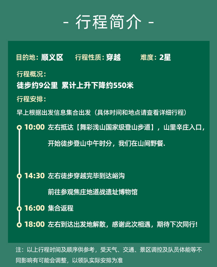 第一站:07:30 地铁6/10号线呼家楼H口集合出发(车等人)
