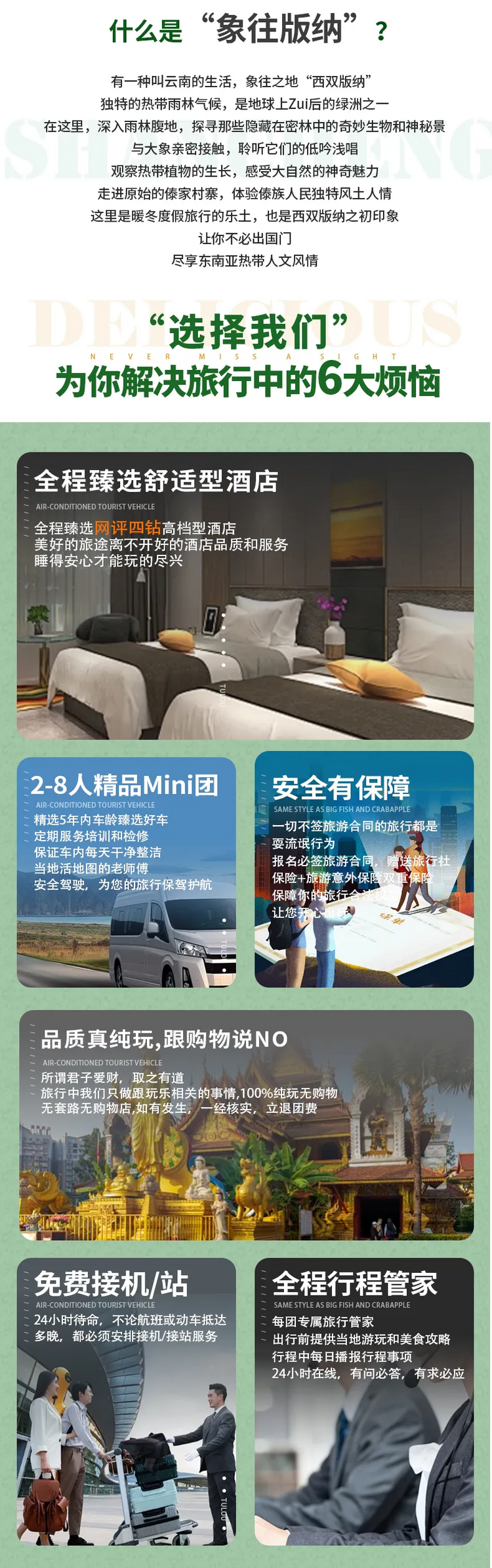▷交通:不包含各地抵达西双版纳集散的往返大交通费用(如:机票和高铁火车票等,提前预定通常折扣都会很低);