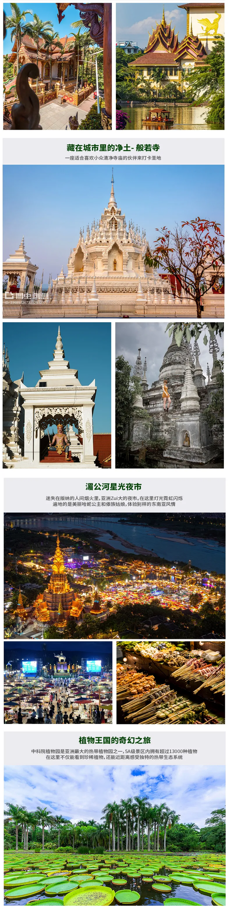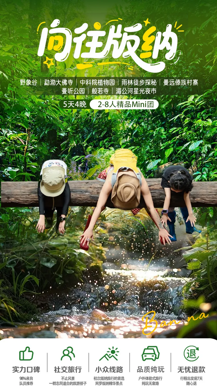 3、景点:行程内所列景点门票(曼听公园、告庄西双景、野象谷、勐泐大佛寺、中科院植物园、雨林徒步体验、曼远傣族古寨);